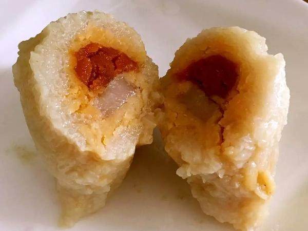 Sticky rice green beans pork salted duck egg yolk and oil drinking water white sugar Xianglian salt