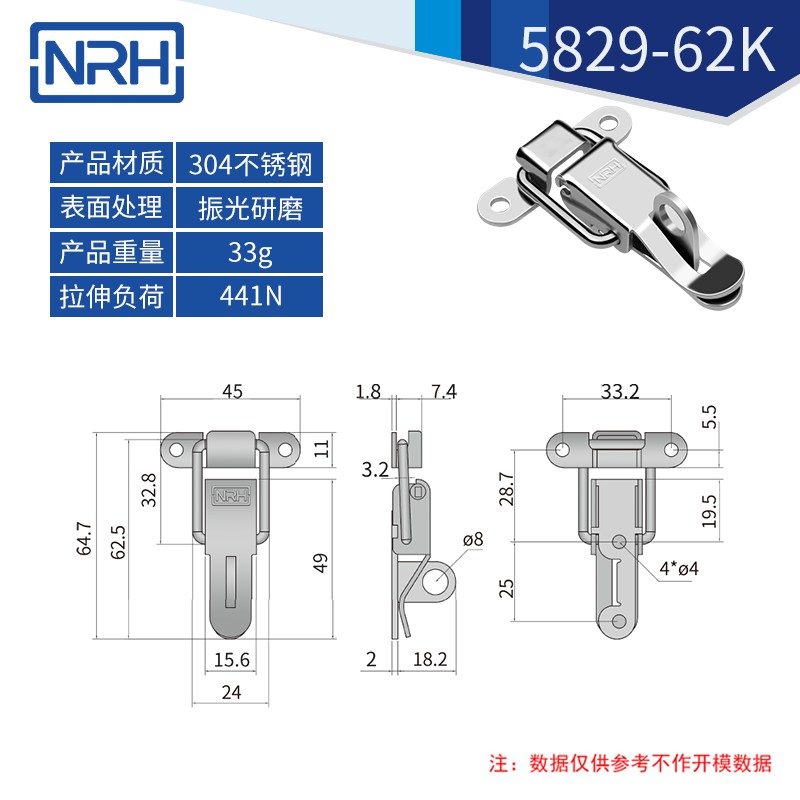 NRH Nahui Hardware 304 stainless steel buckle lock buckle Heavy toolbox bag buckle lock box buckle-5829