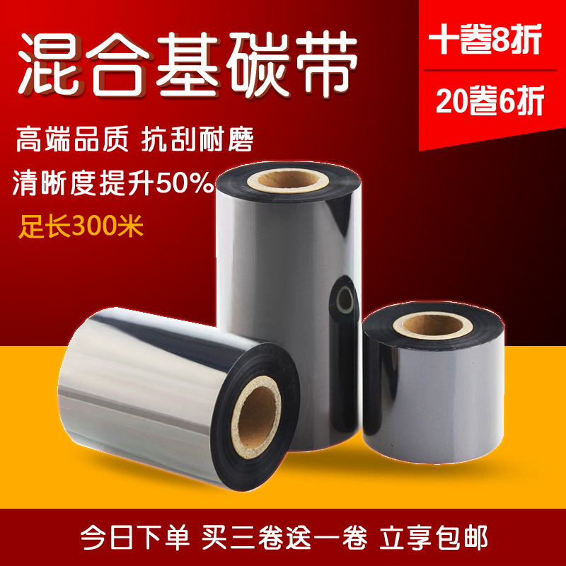 Mixed-based carbon tape 50~110 300 m scratch-resistant labeling machine carbon tape synthetic paper copper plate paper thermal transfer ribbon