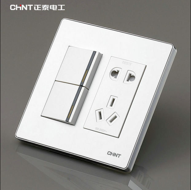 Positive Thai Switch Socket Panel Two Open Double Cut 23 Socket 120 Type NEW9E Phantom Silver White