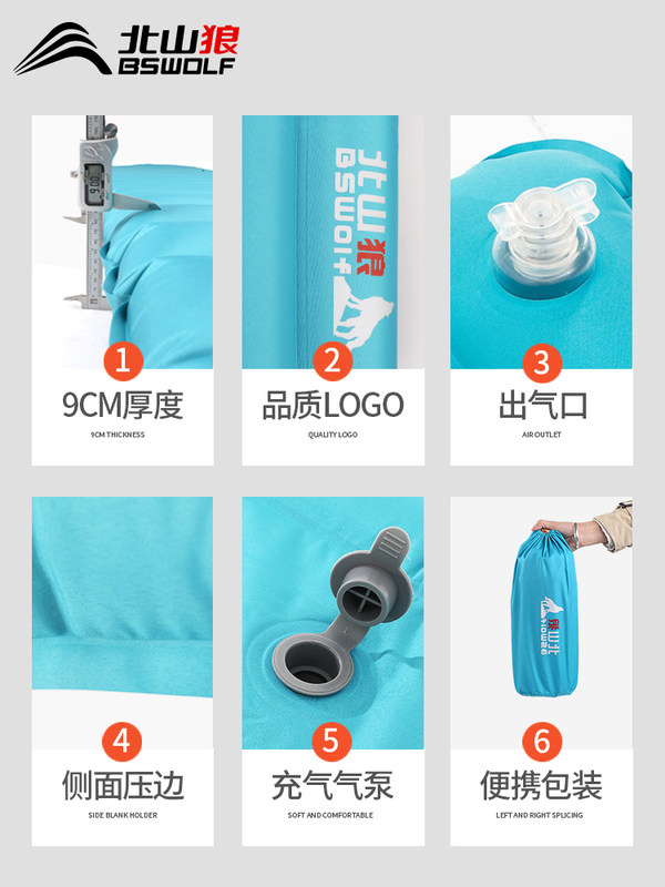 North Mountain Wolf Ultra Light Single Inflatable Mattress Portable Outdoor Tent Sleeping Mat Camping Waterproof Moisture-Proof Floor Mat Widening Thick