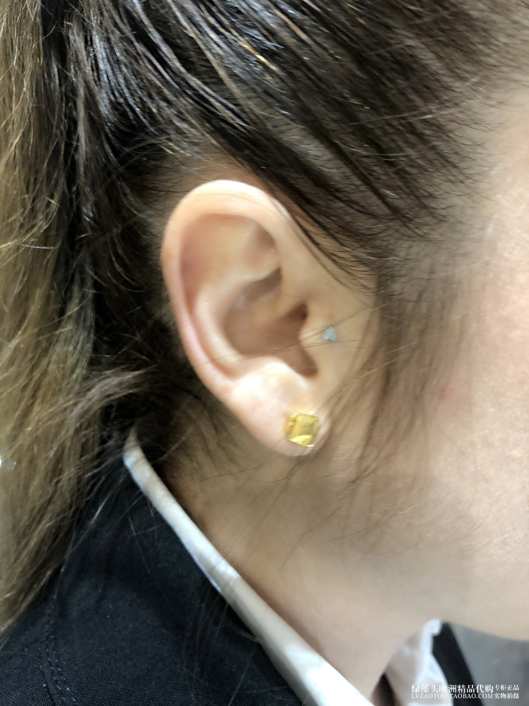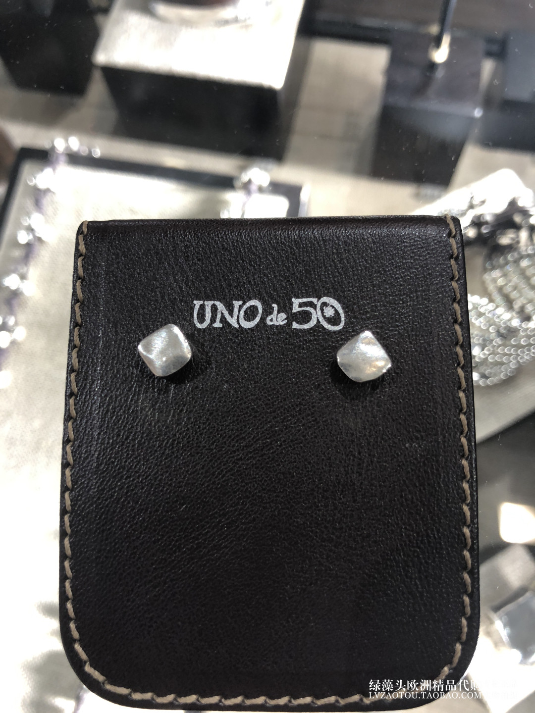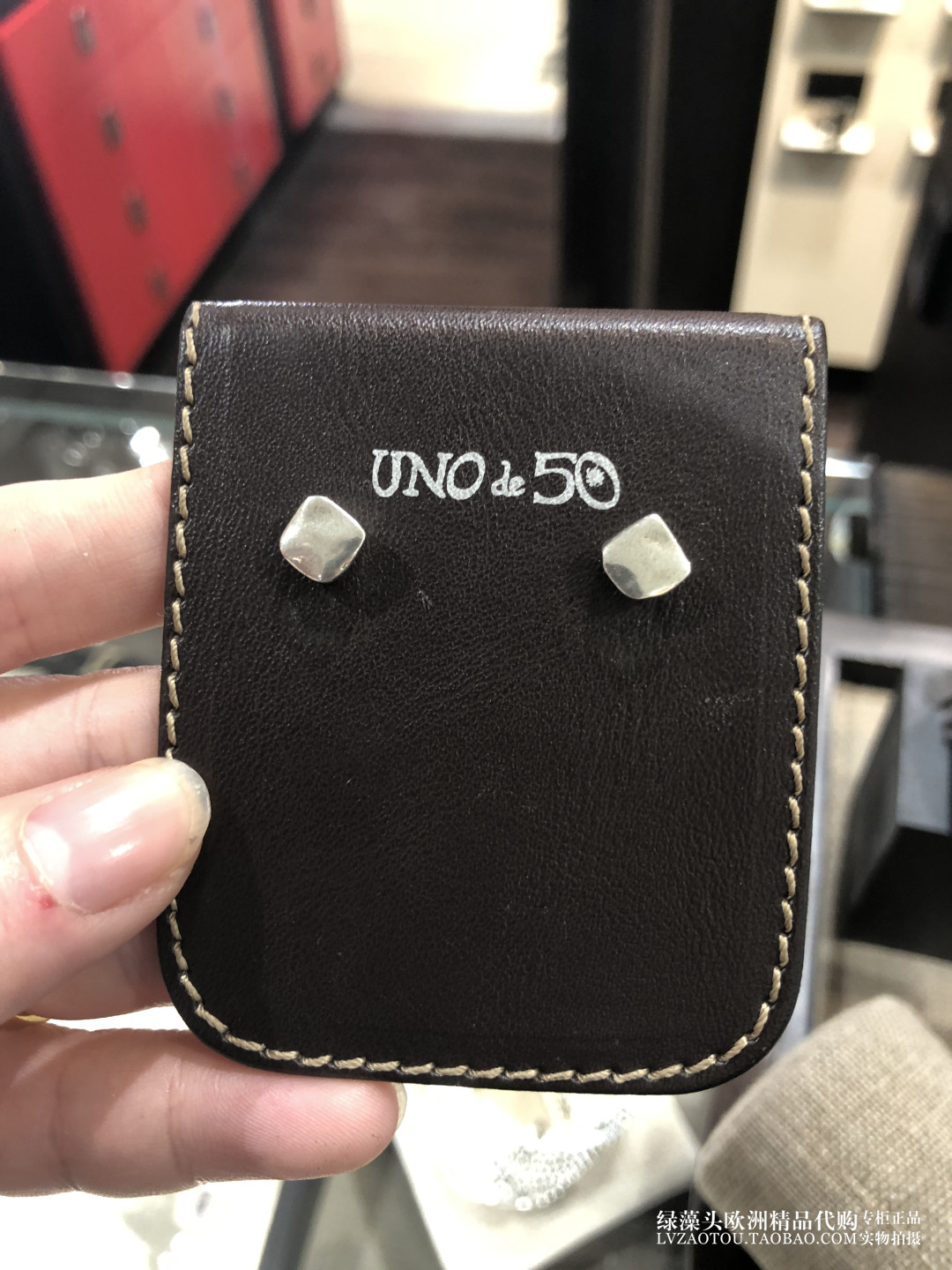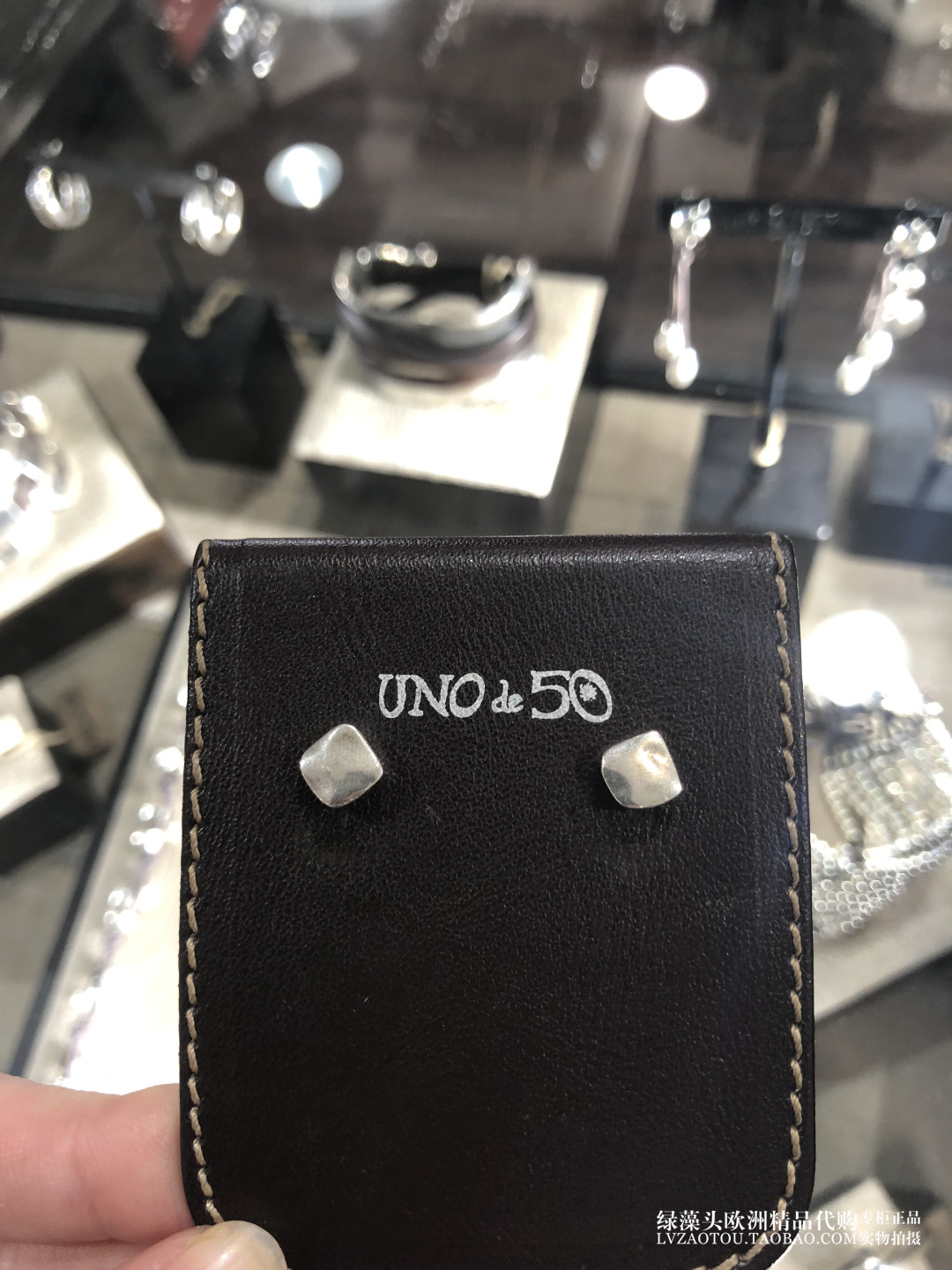European Spanish personality pure handmade tide brand jewelry UNO DE 50 simple cube gold-plated ear pin