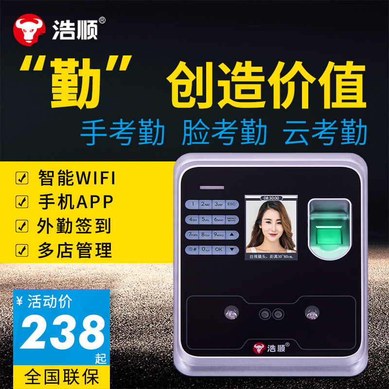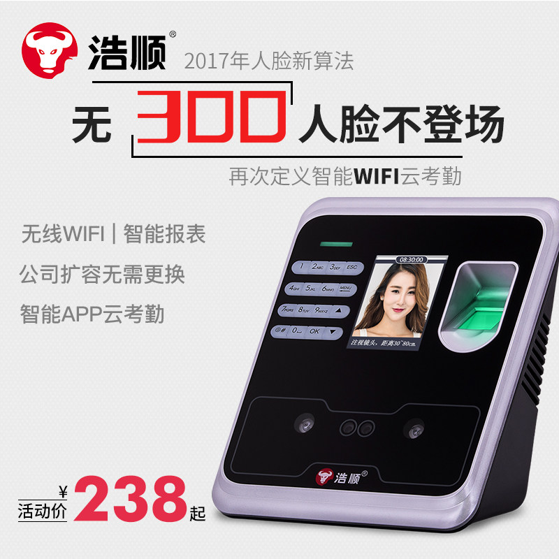 Haoshun F3969 Face fingerprint cloud attendance machine Face recognition Staff to and from work punch check-in All Palm vein multi-location wireless WIFI network Mobile phone APP check-in punch-in machine