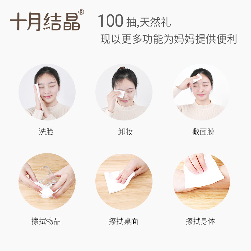October Crystal maternal and infant dry and wet dual-use cotton soft towel Newborn non-wet paper towel Baby dry and wet dual-use 100 pieces