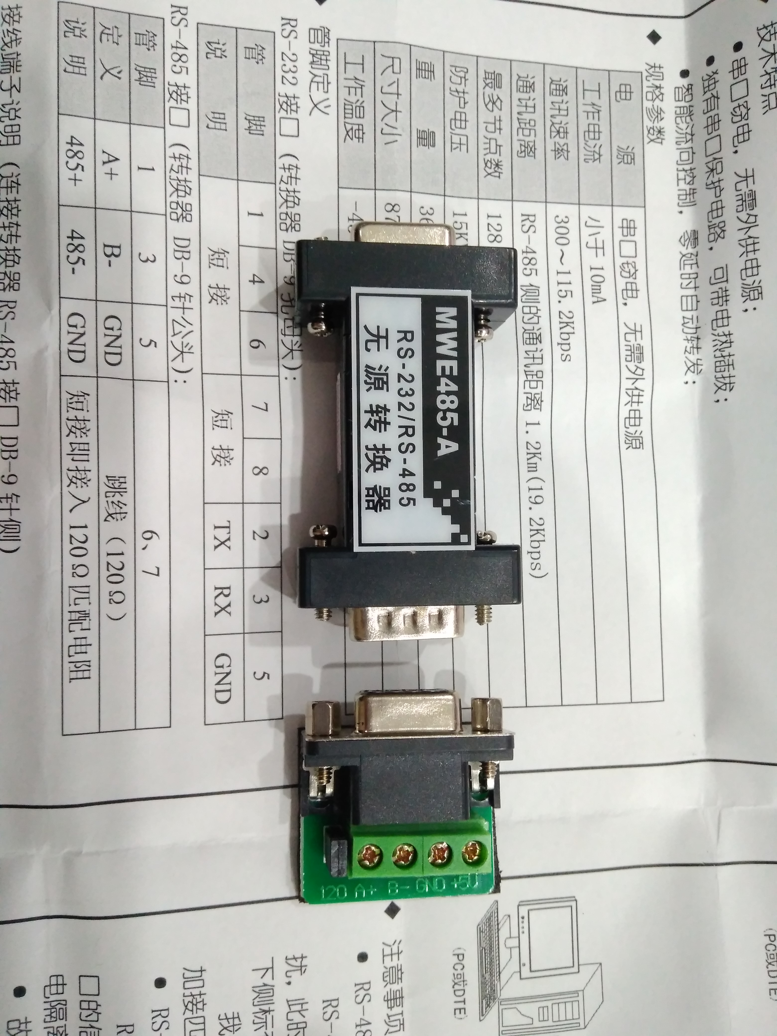 Maiwei MWE485-A industrial grade 232 to 485 bidirectional 485 passive converter five-year warranty