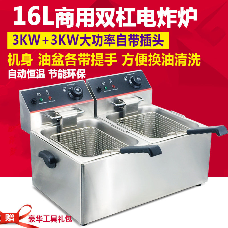 8L 16L liters double cylinder double screen commercial electric fryer large fryer thickening fryer French fries fried chicken wings machine