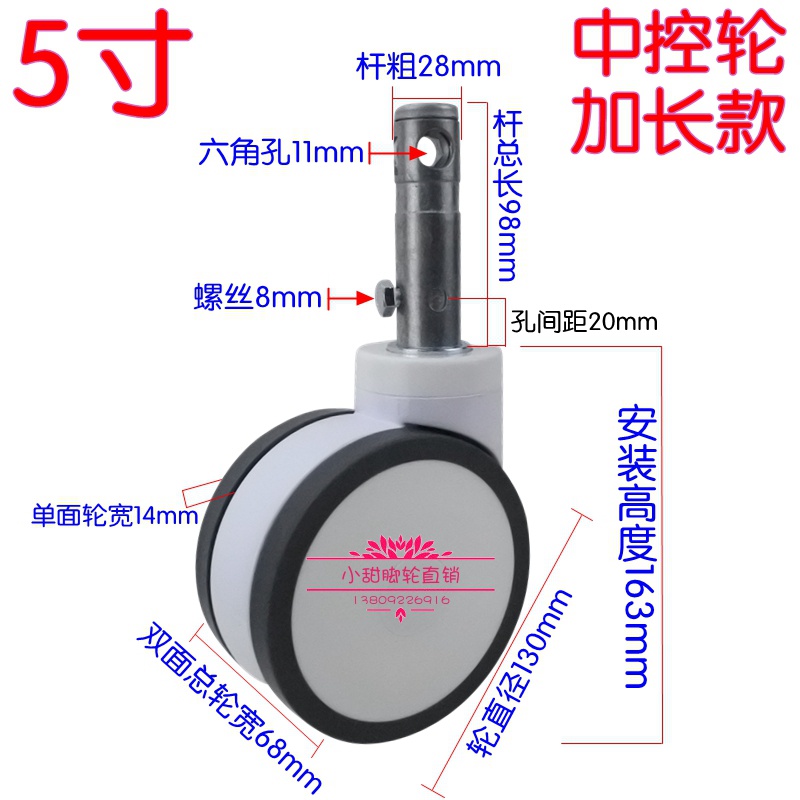 5 inch 6 inch universal wheel double-piece long and short rod central control wheel medical multi-function treatment nursing bed equipment caster wheel