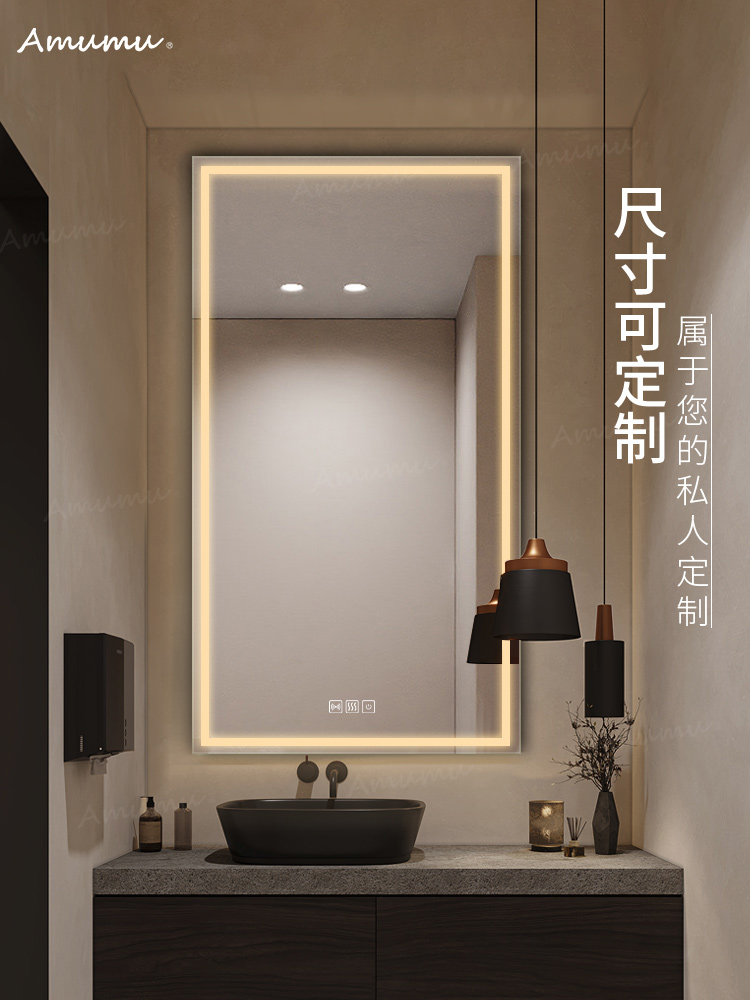 Smart Bathroom Mirror LED Lamp with lamp Touch Screen Cosmetic Room Mirror Hanging Wall Style Make-up Mirror Wall-mounted Toilet Mirror