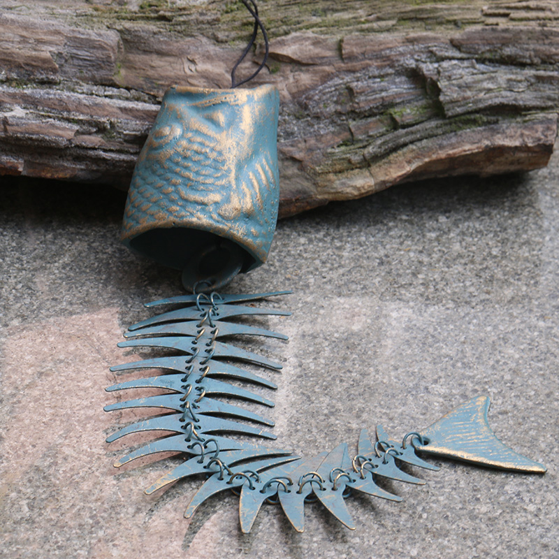 Flat mouth fish metal imitation ancient southern cast iron hanging decoration swinging piece doorbell Rattle Bell Wind Bells Decoration Iron Art