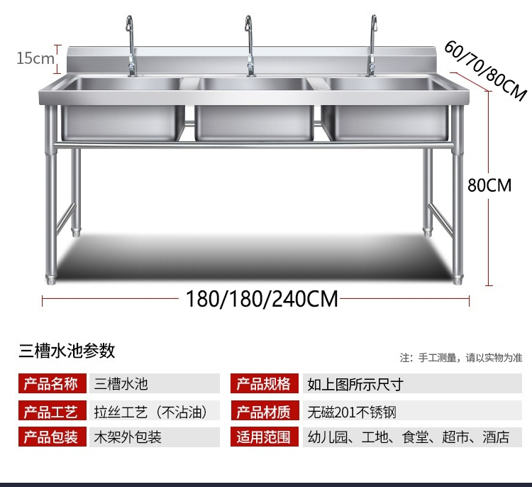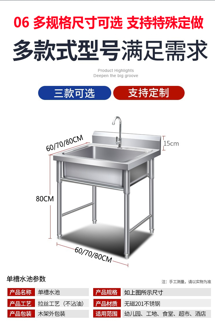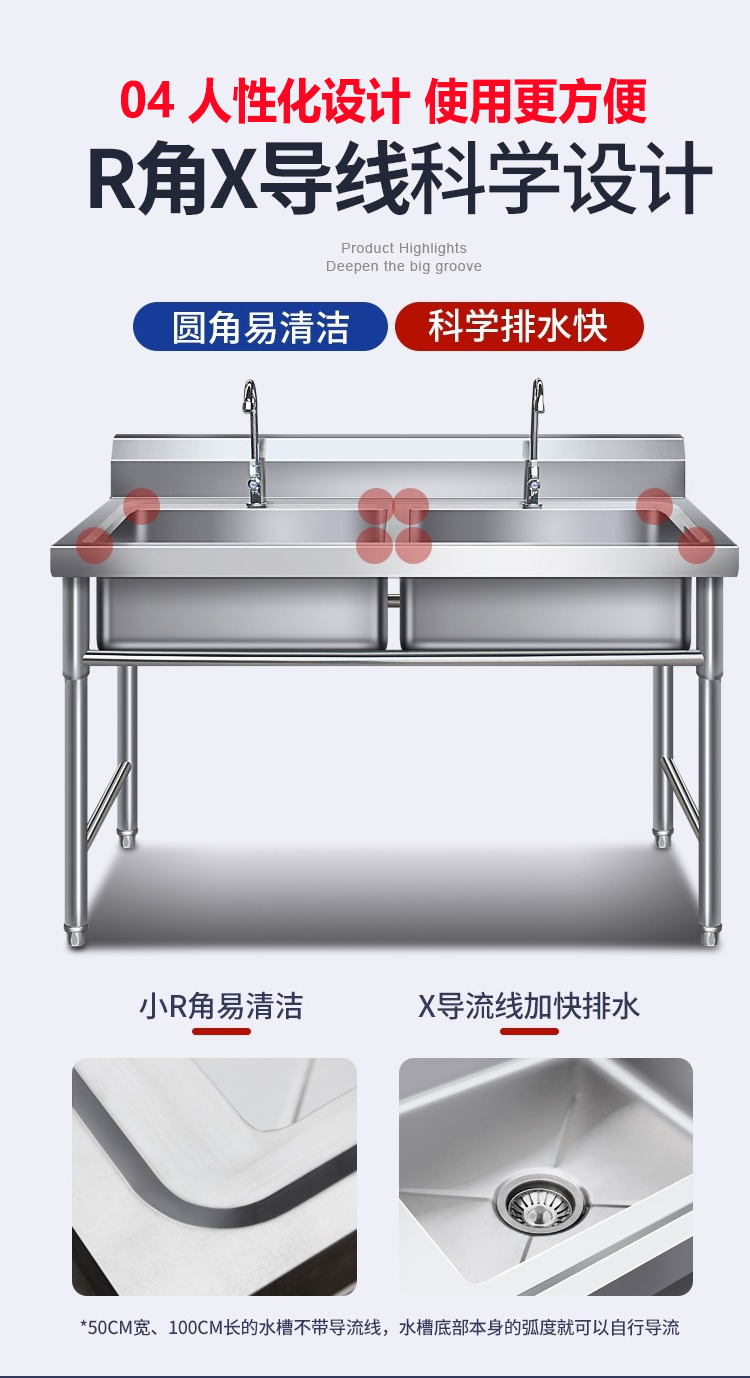 Xishide commercial stainless steel sink single-slot double-slot stainless steel sink restaurant dish washing sink sink