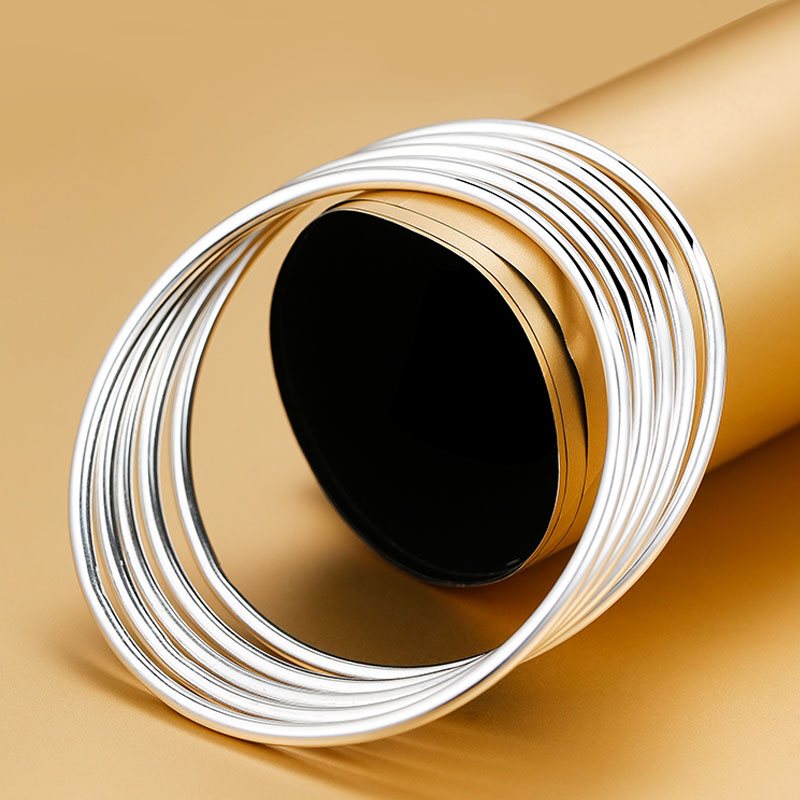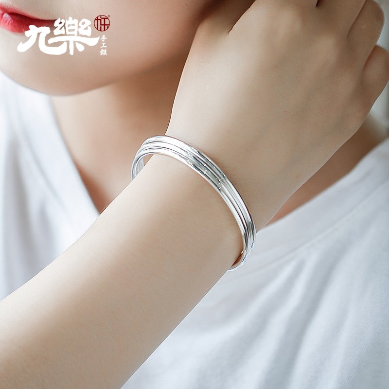 Nine music 999 sterling silver bracelet for women smooth solid simple fine bracelet three lives three feet silver bracelet Tanabata gift