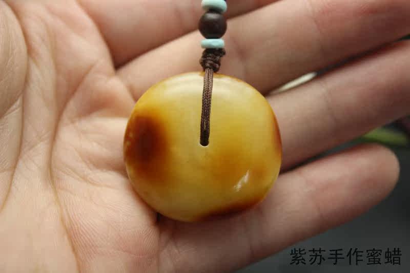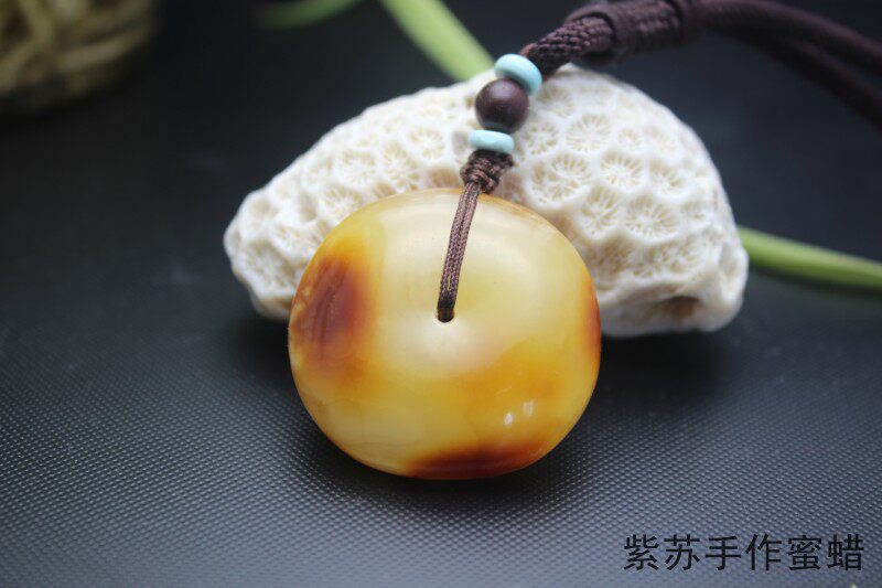 Natural amber wax raw stone hand polished pittle button cake barrel ball ball necklace