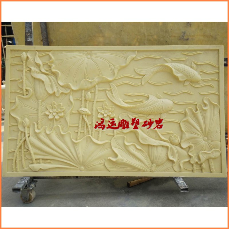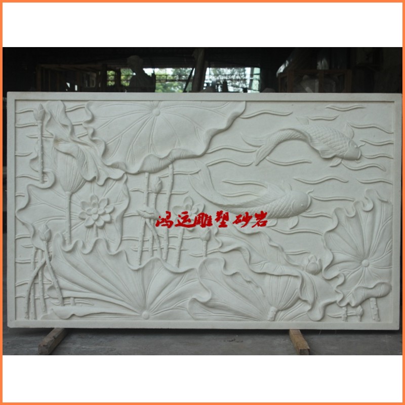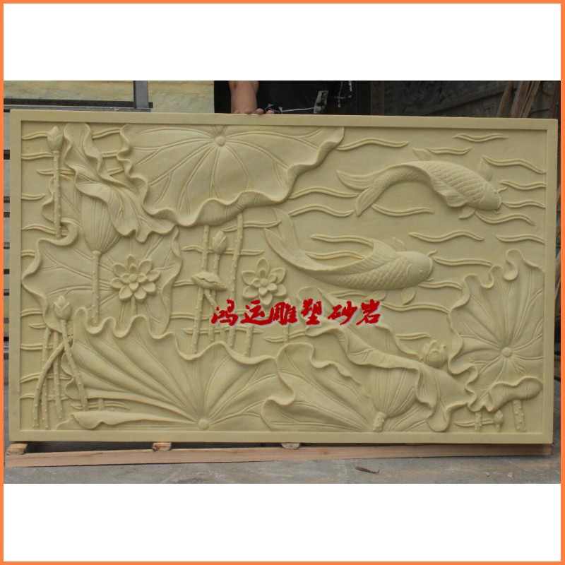 Special price sandstone Chinese relief lotus flower figure mural background wall hotel villa interior and exterior decoration materials
