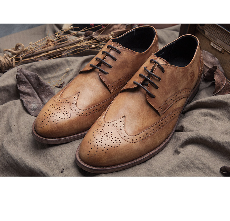 Men's casual leather shoes genuine leather sculpted bouloc style men's shoes Inlen Retro Pointed Tide Shoes