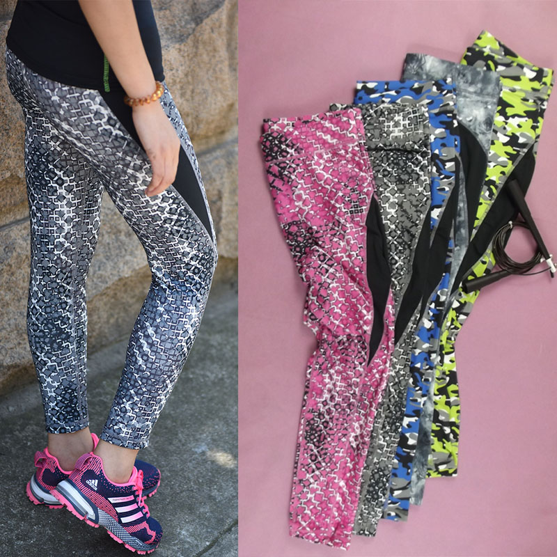 Spring and autumn Women's style Fashion Camouflares elastic Fitness Fitness 90% pants Sweat Speed Dry Sports Tight yoga Running pants K742
