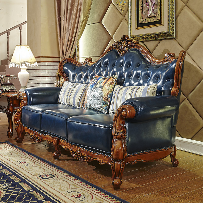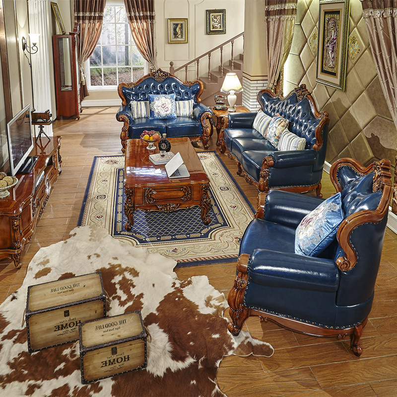 European leather sofa villa 123 combination light luxury American leather sofa British retro first layer leather art sofa