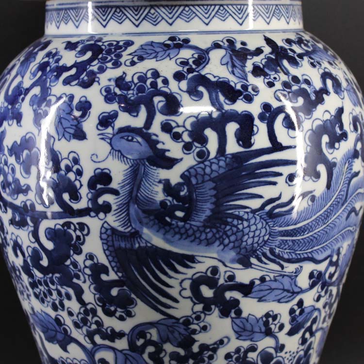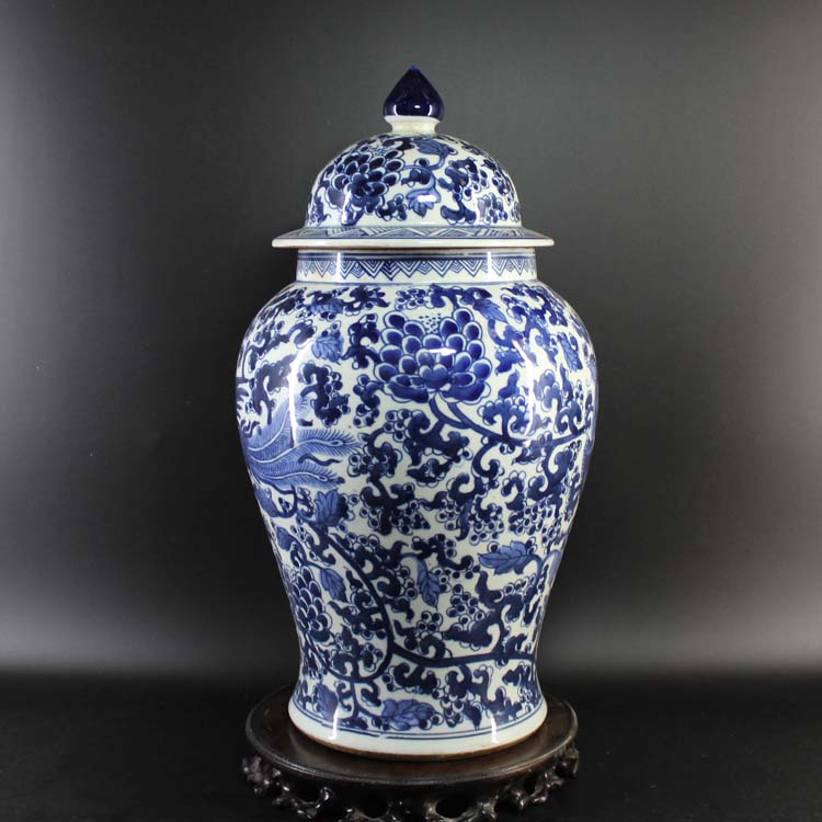 Jingdezhen Qinghua General pot Phoenix Pattern Kangxi-year style Ancient Play Antique Collection Boutique Pendulum of the People's Kiln Qing