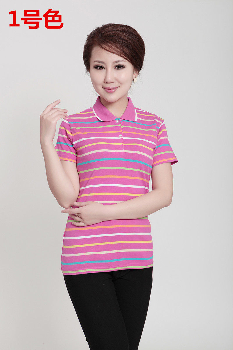 Summer Money Middle Aged Women's Clothing Short Sleeves Big Code Striped T-Shirt Mom Clothing Sports Casual Turtlenecks T-Shirts Polo Shirts-Taobao