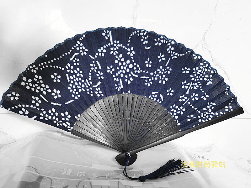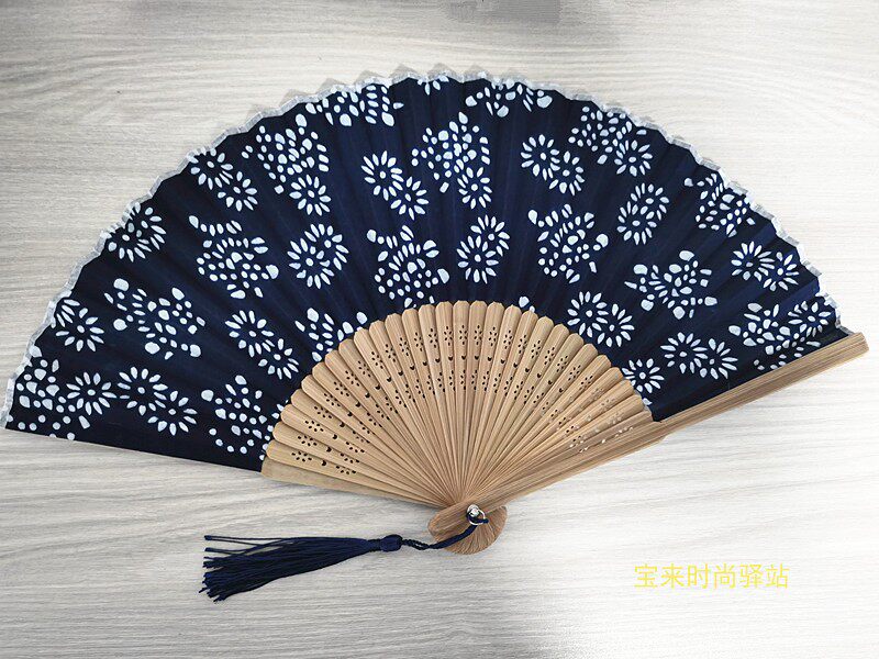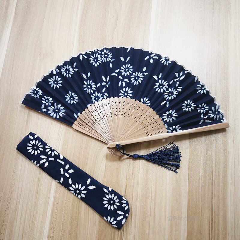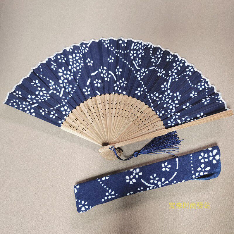 Promotional price boutique daily-use fan Wuzhen travel bamboo fan batik printing and dyeing folding fan free cotton fan cloth cover