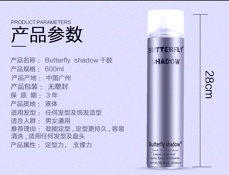 Butterfly shadow Hairspray Butterfly shadow Styling Hairspray Extra hard styling spray 600ml