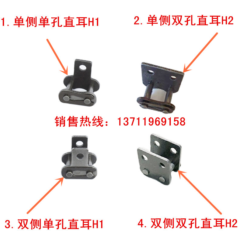 08B 4 points single side single hole straight ear H1 chain 10A 5 points single side single hole straight ear H1 chain 12A 6 points single side single hole straight ear H1 chain 16A 1 inch single side single hole straight ear