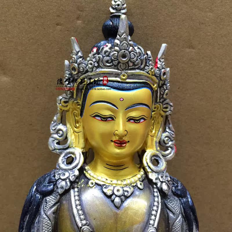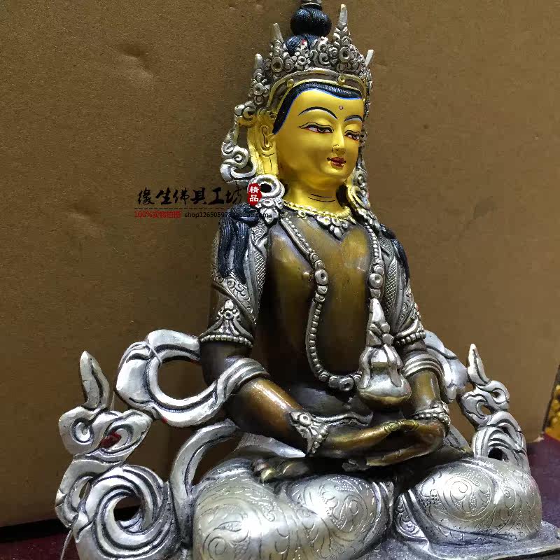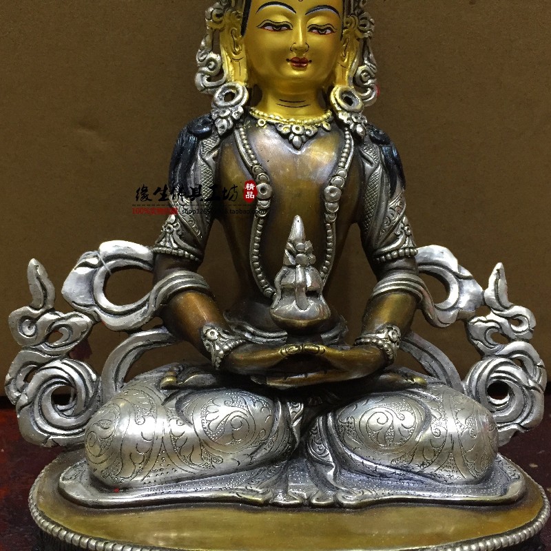 Buddha Buddha statue of Nepal imported pure hand - made 7 inch copper gill and silver