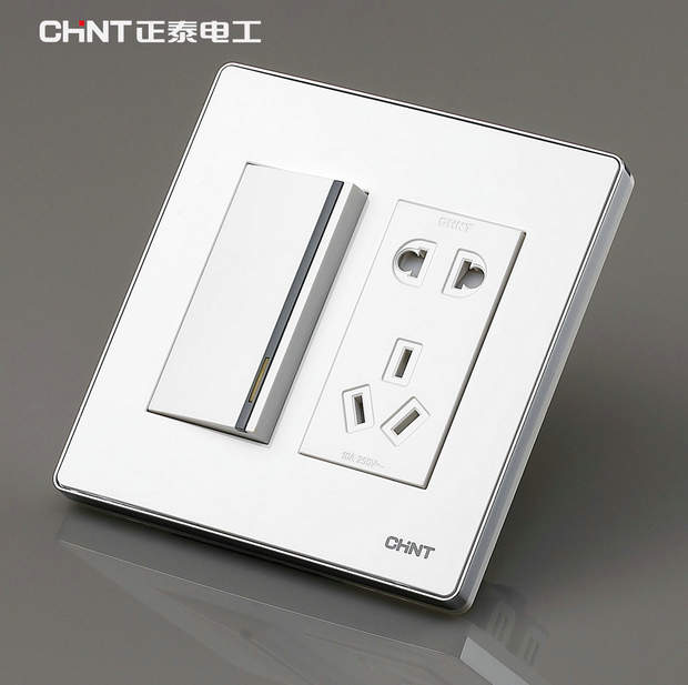 Zhengtai switch socket panel 120NEW9E opens double - cut five holes one open two or three plugs and white silver side