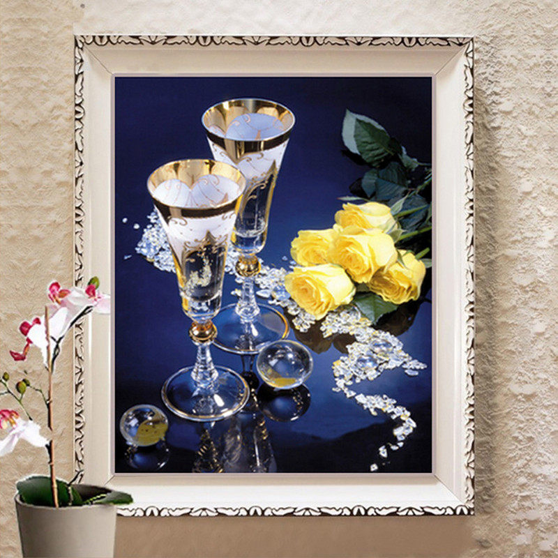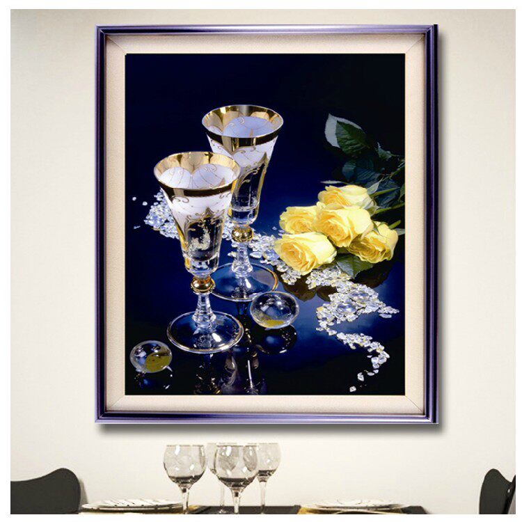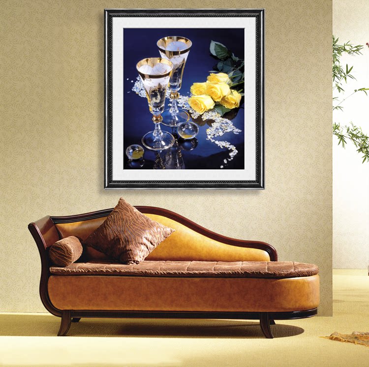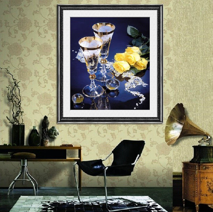 Printed silk thread cross embroidered crystal rose new living room Cross embroidered wine glass Romantic Dining Room small series
