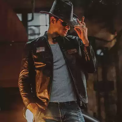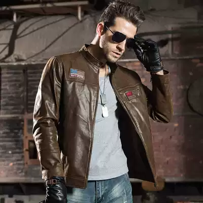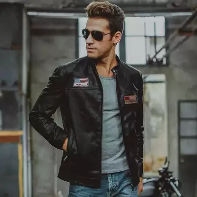 Haining leather leather jacket men's leather jacket short American jacket locomotive uniform casual single slim men's jacket