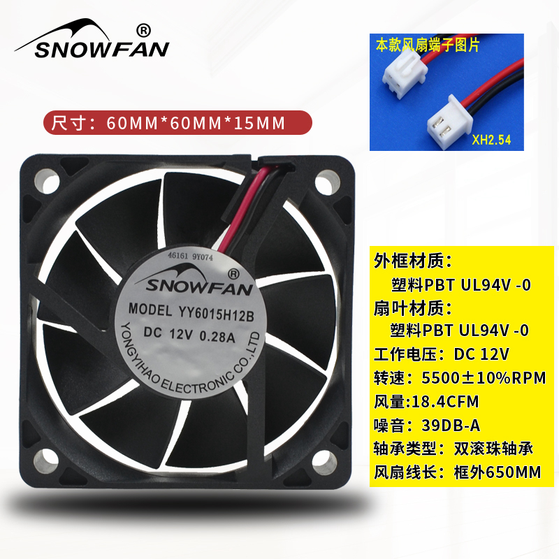 SNOWFAN6CM6015 DC brushless 12V large wind 5500 turn ball cooling fan YY6015H12B