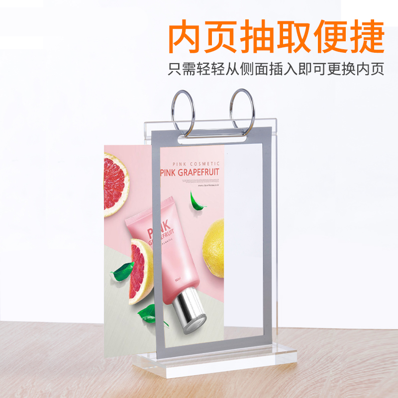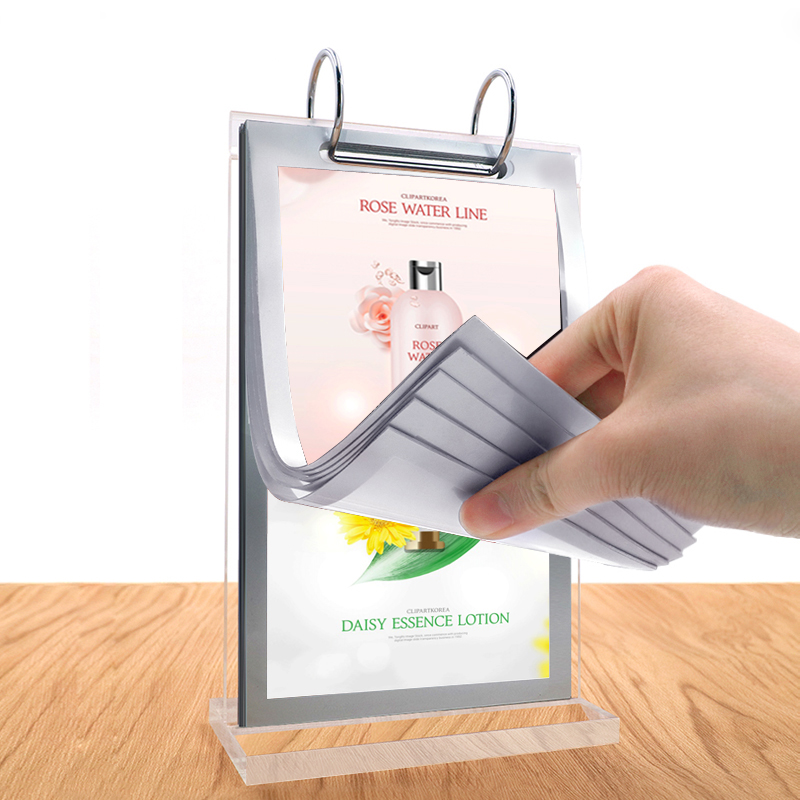 Transparent acrylic page-turning table Wood bottom page-turning menu Wine Water Card loose-leaf Desk Calendar Frame turning page frame