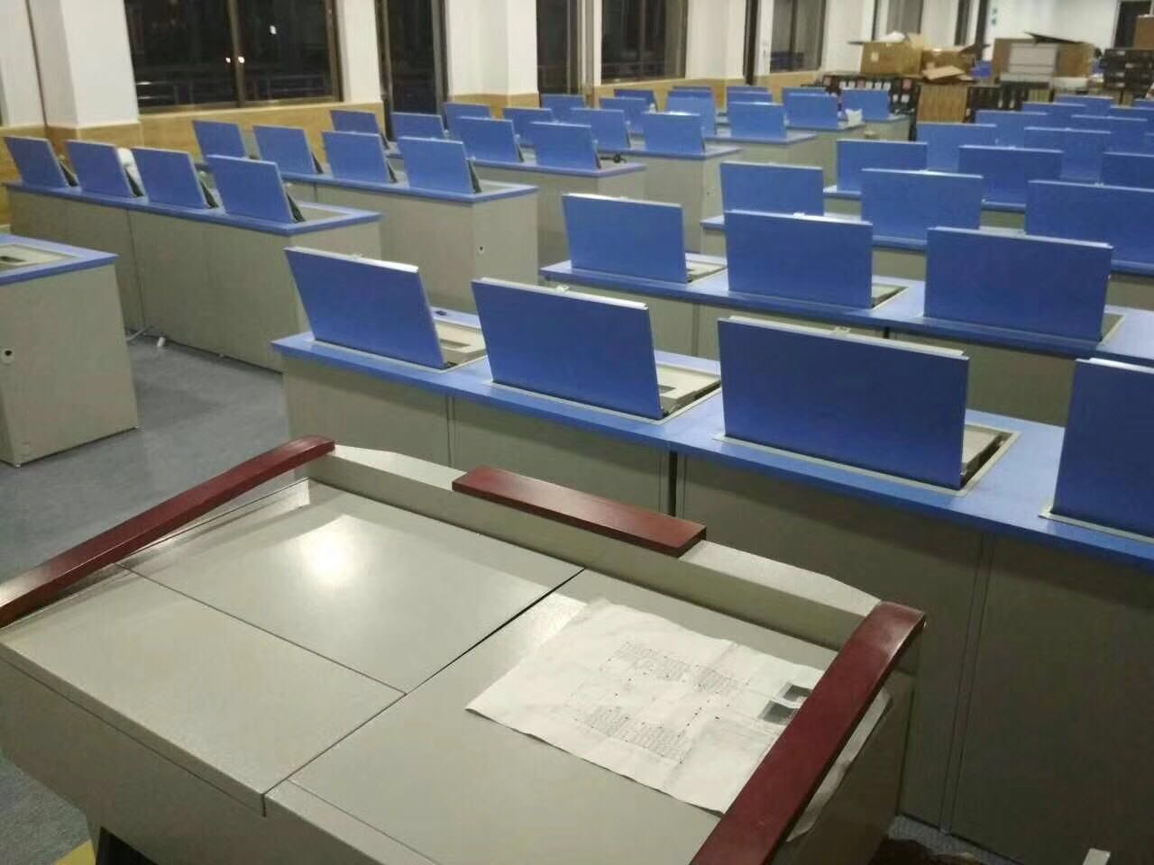 Single-double trio bit liquid crystal lifting and overturning type computer classroom computer desk flipper