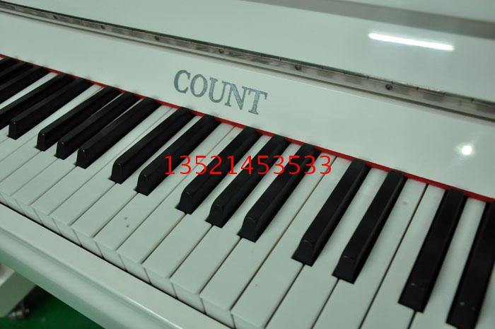 White classic flawless vertical piano Count Counct Soo Hao plays the piano white piano