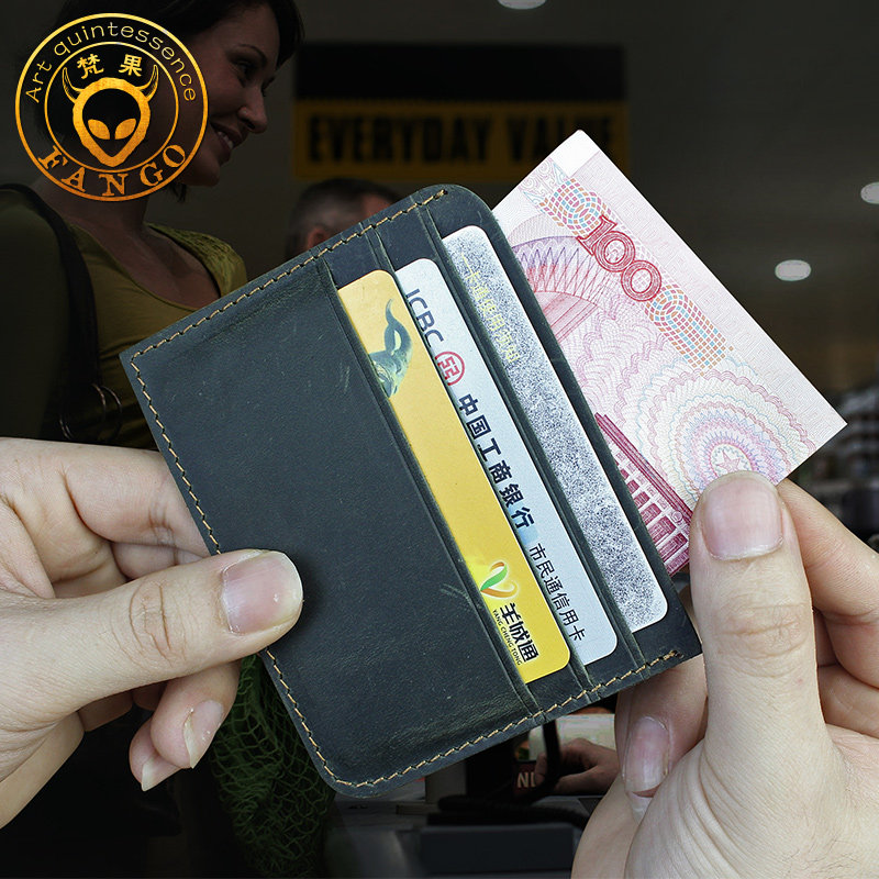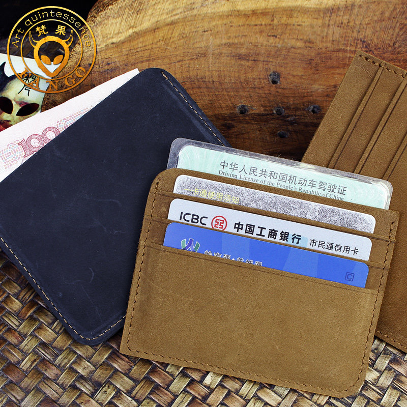 Original handmade leather card bag mini first layer cowhide men's and women's retro card bag ultra-thin crazy horse leather driver's license bag lettering