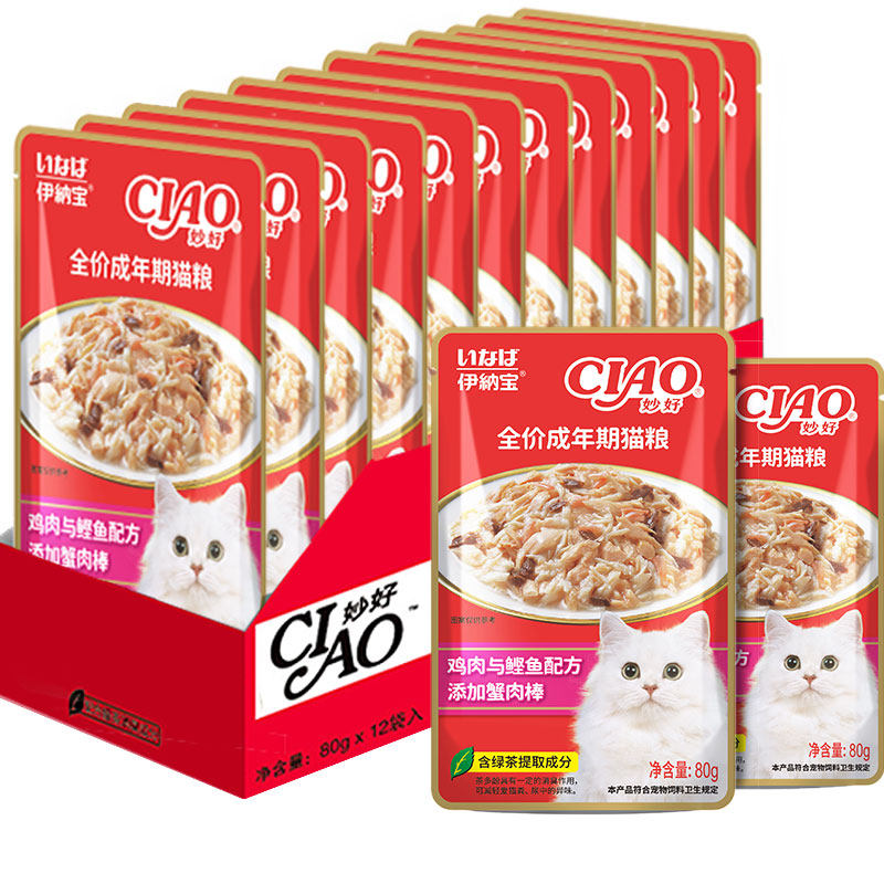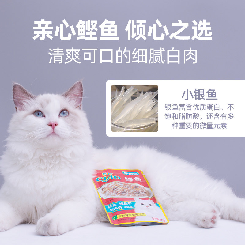 Inabao cat snacks soft bag Japan pro-heart wonderful fresh bag wet food cat fish cat canned 12 packs of nutrition and fattening