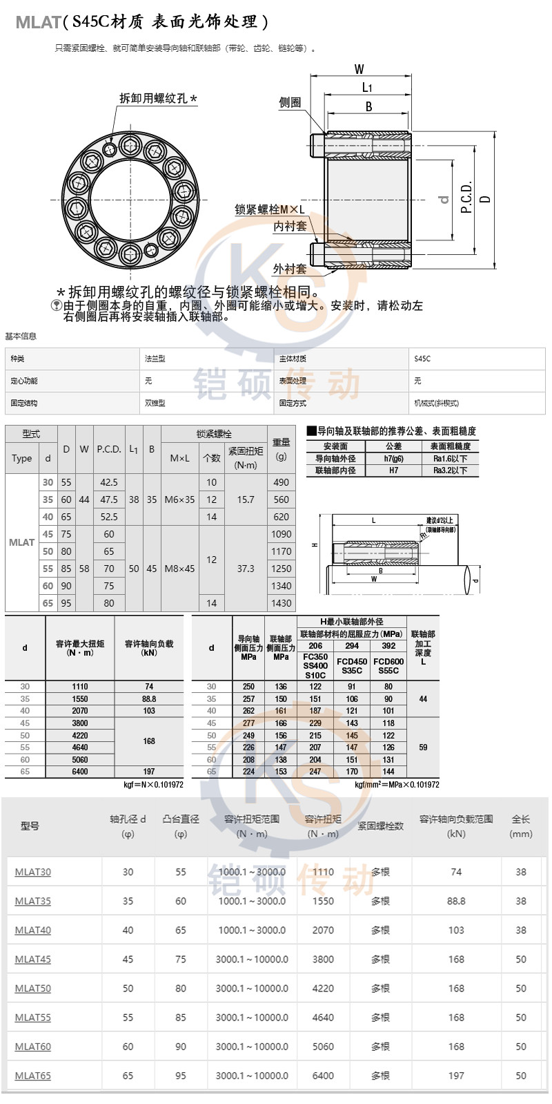 MLAT Type Keyless Shaft Lining Original Import Delivery Time 3-10 Days When Placing Order Confirm Delivery Time with Customer Service MLAT30MLAT35MLAT40MLAT45MLAT