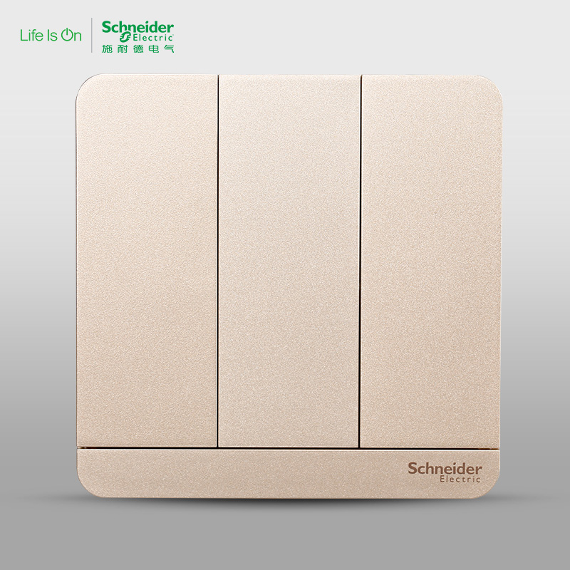 Schneider Electric Switch Socket Three-Position Three-Position Triple Dual Control Switch Panel 16A Thin Twilight Gold