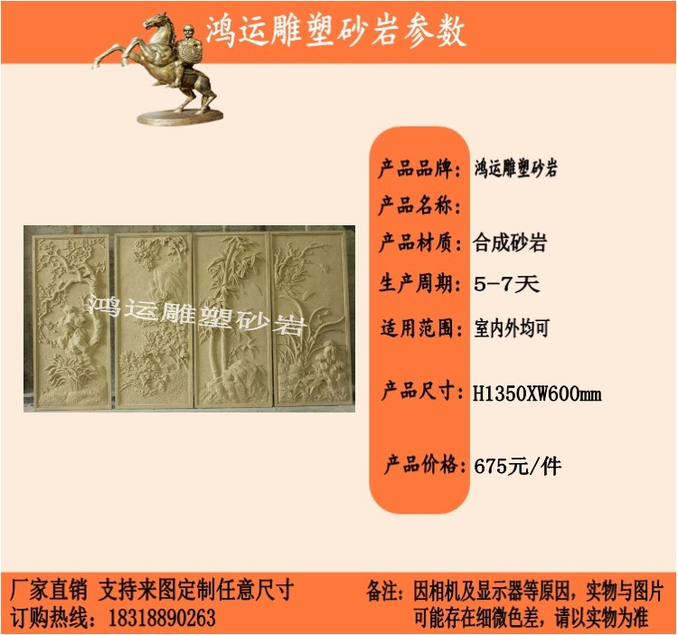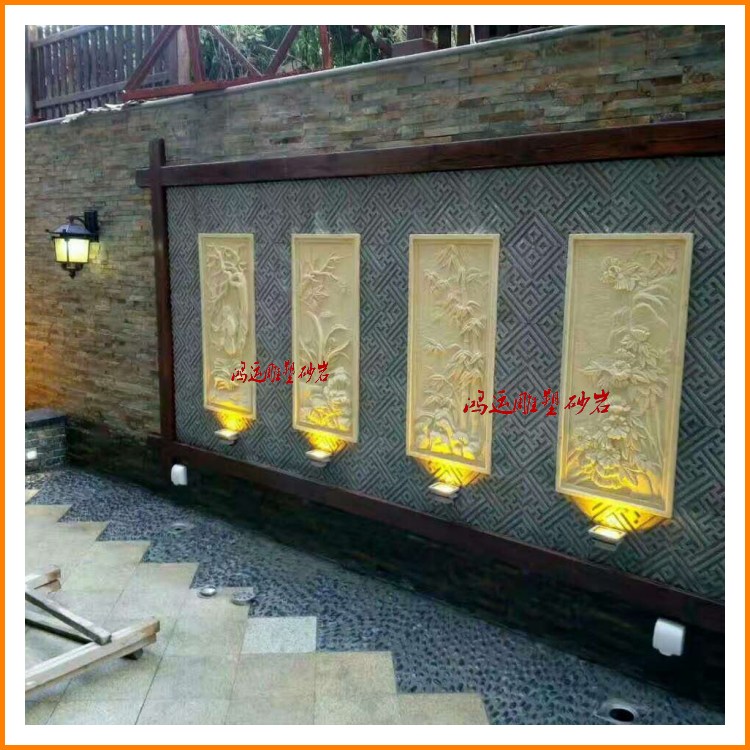 Hongyun sculpture sand rock glass fiber sculpture Sand rock relief mural background wall Chinese screen partition Mei Lan bamboo chrysanthemum