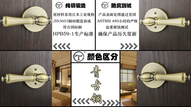 American bronze lock American antique plate hand lock chamber bedroom door door lock bathroom lock make-up room door lock LP0671