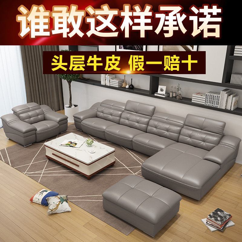 Head Layer Buffalo Leather) Single Double Armrest Sofa Bed Mattresses 2 Cabinets Table 6 Chairs TV Cabinet Tea Table