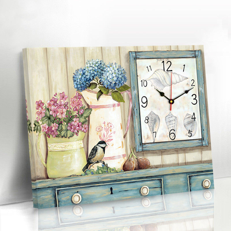Living room meter box decoration painting dining room hanging painting free punching distribution box Nordic blocking wall clock creative clock mural