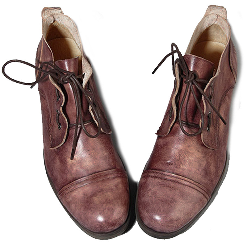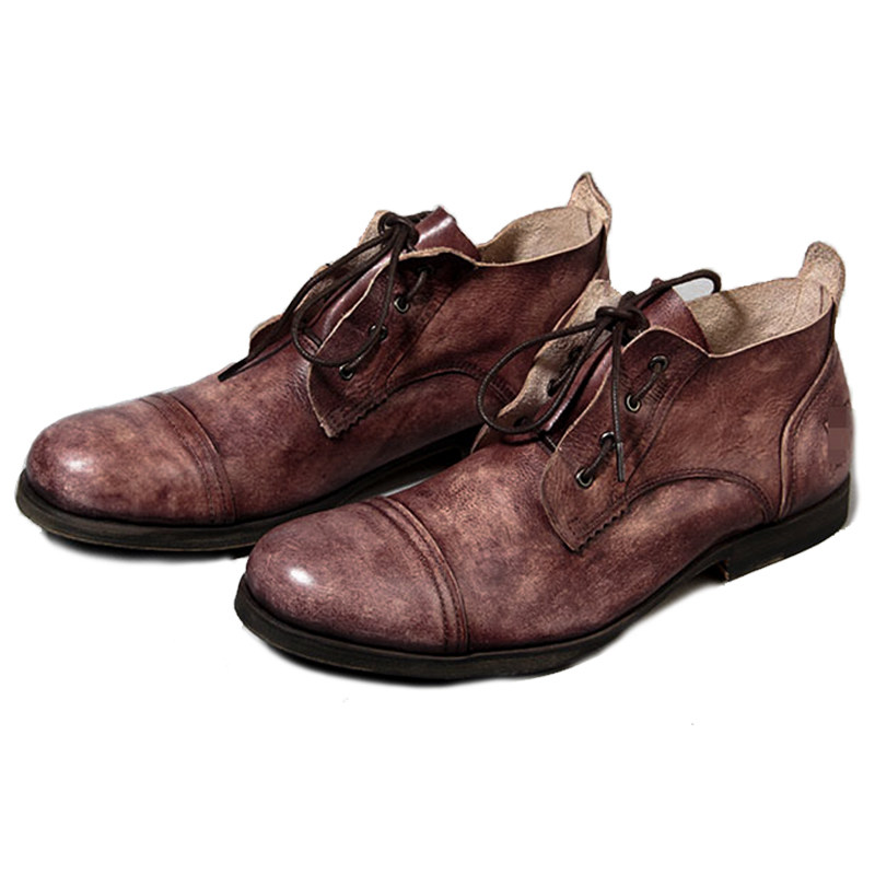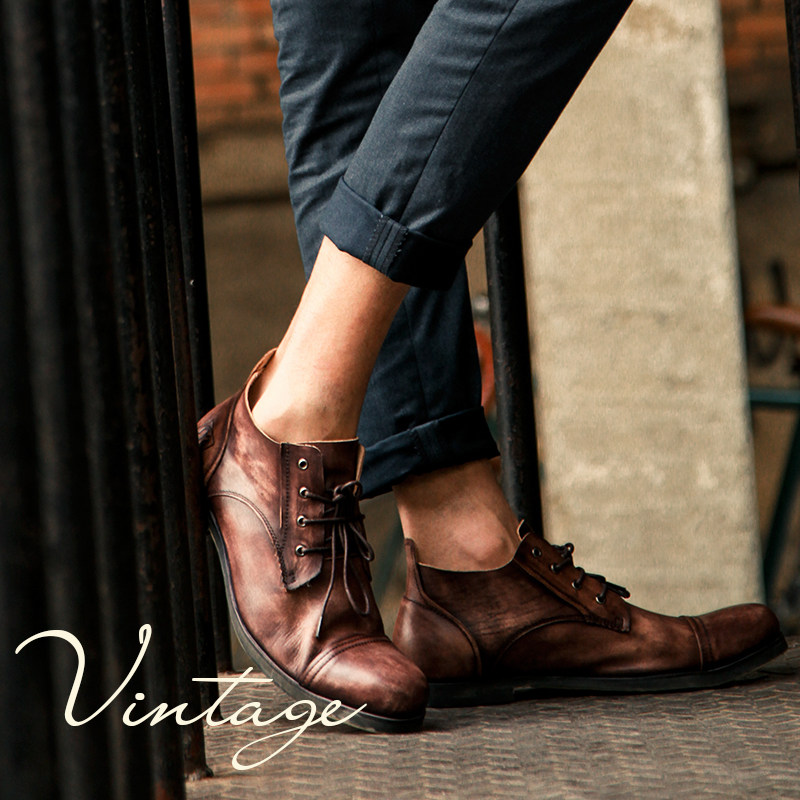 Autumn Winter Men's Inn Retro Leather Shoes Men's Wave Inn Lonn Round Head Retro Shoes Men Genuine Leather Casual Shoes Lace Single Shoes