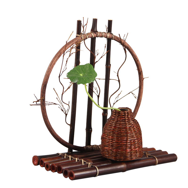 Kongfu Tea Road mini bamboo choreographer vase Japanese style creative meditation retro tabletop tea art flower arrangement bamboo steak swing pieces