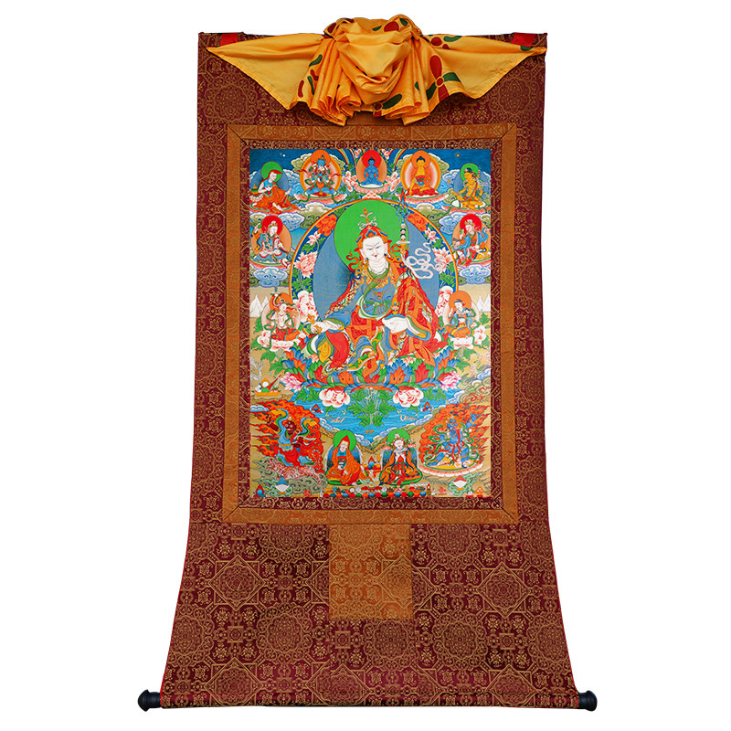 Prade lotus eight-change lotus-born Tibetan tantric hanging painting handmade finely mounted ethnic style printing thangka decorative painting