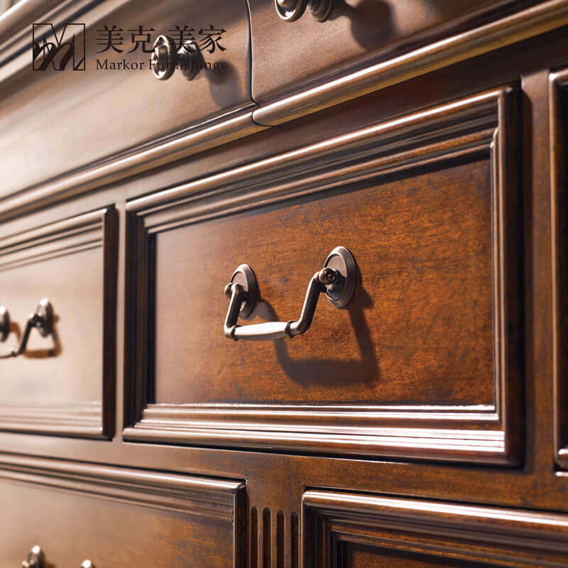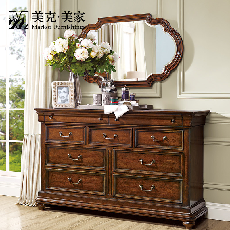 Meek Beauty Home Marseille Morning Light American Makeup Bench Solid Wood Retro Makeup Table Bedroom With Nine Pumping Lockers
