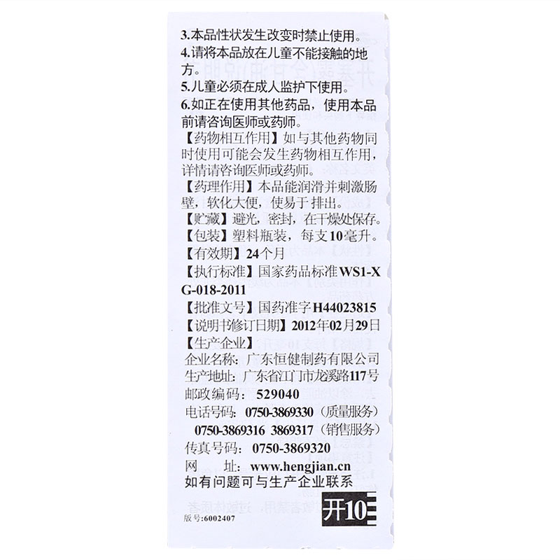 Hengjian Kaisailu (including glycerin) 10ml * 20 boxes of constipation for adults, the elderly and children