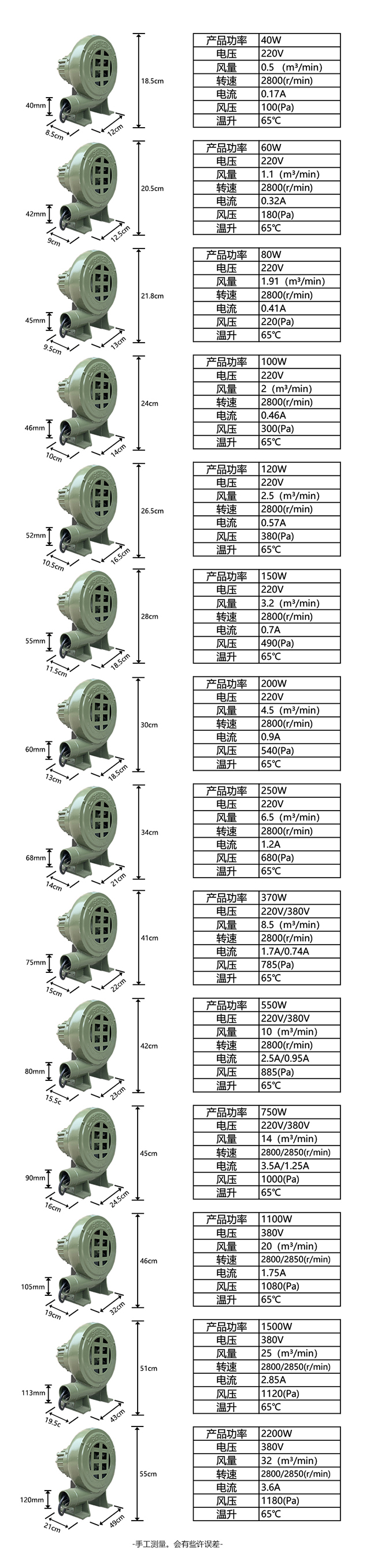 Home Barbecue Ventilator Cast Iron High Power Blowers Industrial Stove Centrifugal AC Ventilator 220V 380V