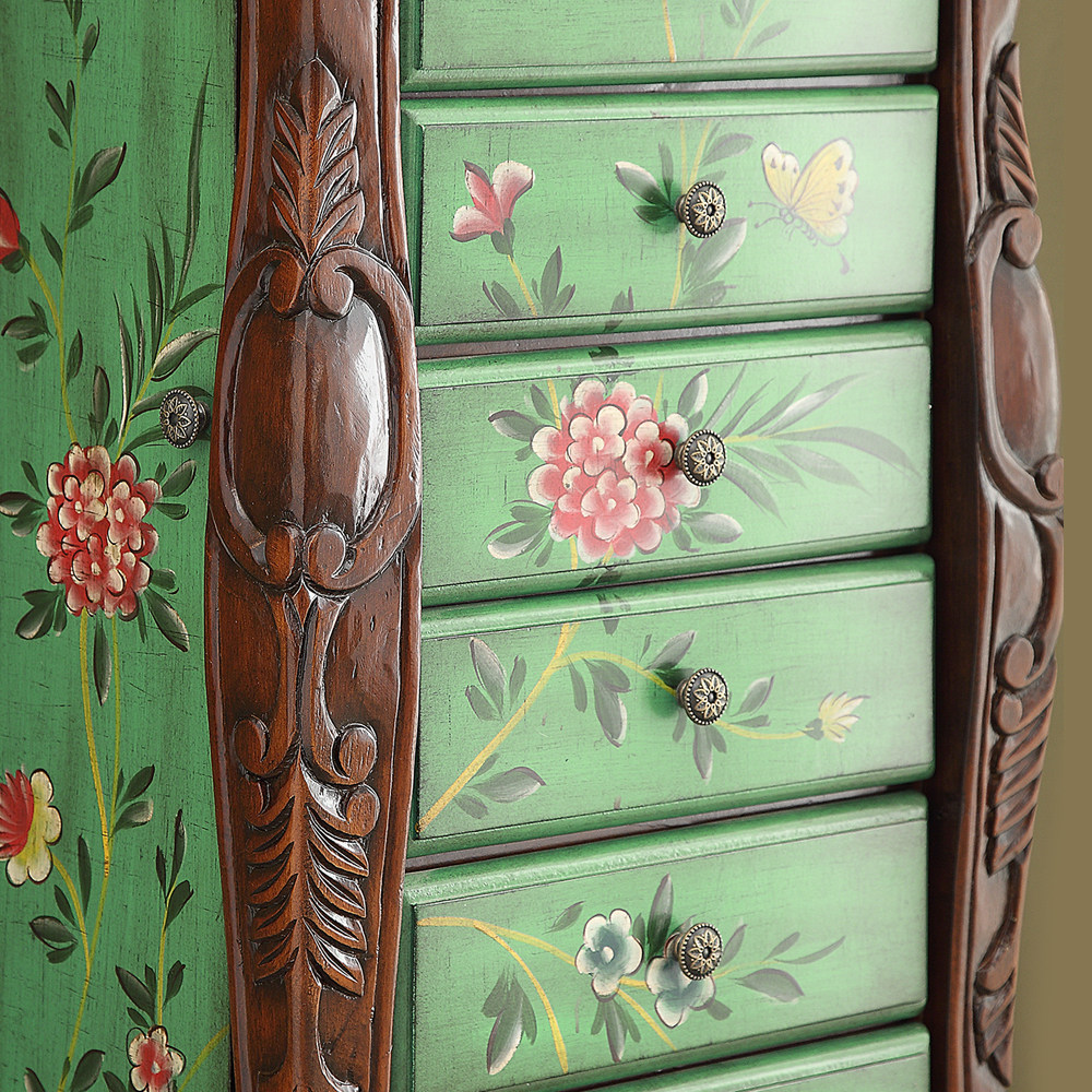 American seven bucket cabinet dressing cabinet green antique color painting personality jewelry cabinet white make old jewelry cabinet art and art