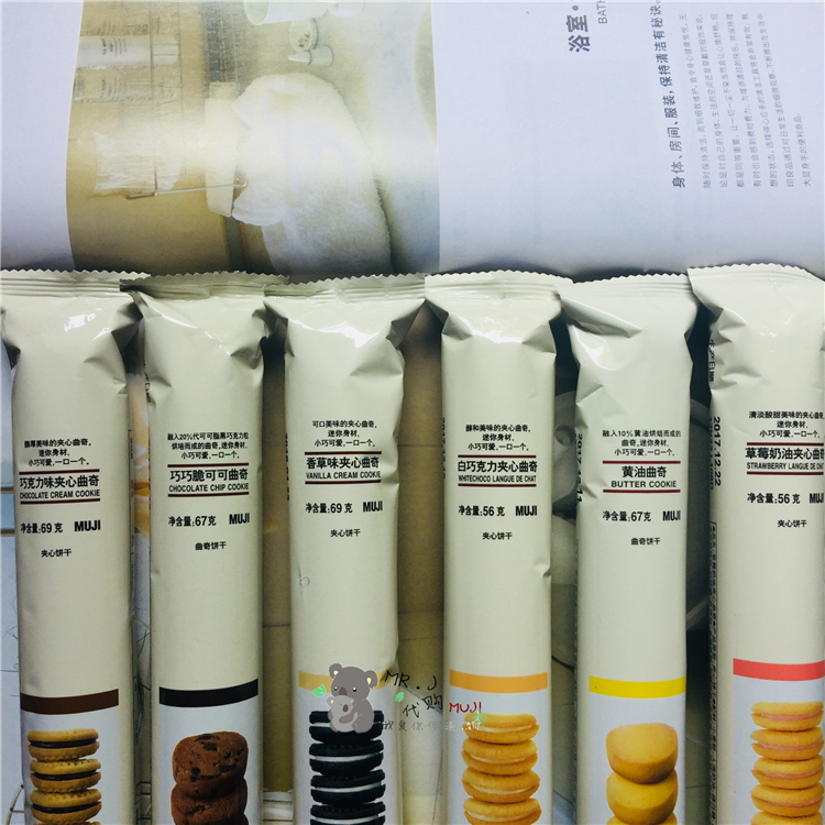 Chocolate taste sandwich cookie 69g strawberry sandwich cookie 56g cream chocolate butter cookie 67g vanilla taste sandwich cookie 69g white chocolate sandwich cookie 56g coincidence