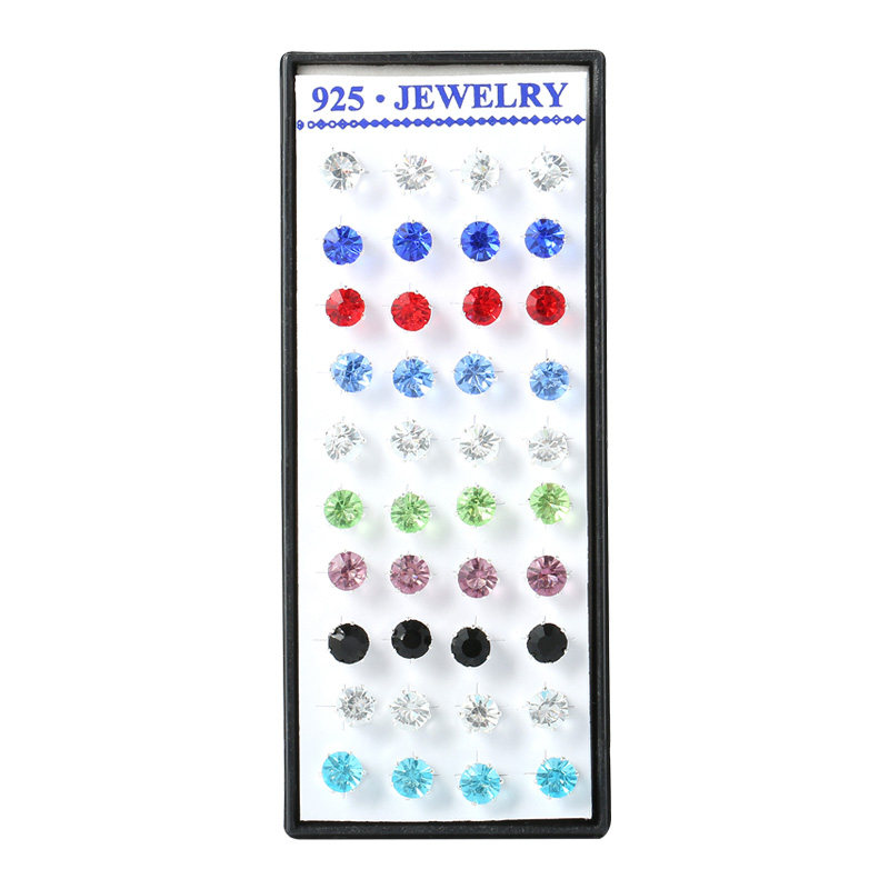 925 silver needle zircon stud male and female pure silver ear nail anti-allergy ear pin box with 20 pairs of clothes